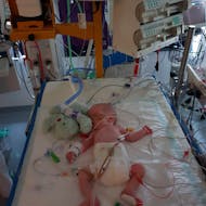 Jay had een infectie opgelopen, maar het was niet bekend hoe dit was gebeurd en wat het was. Jay was zo hard aan het knokken dat hij op zijn reserves liep. Twee minuten later waren we weer terug op de IC. Deuren en liften werden open gehouden terwijl ik met Jay in een rolstoel zat en werd geduwd door de kinderarts. Toen we op de IC aankwamen werden de gordijnen van de andere patiënten gesloten en werden er meerdere karren met materiaal bij gehaald, waaronder een reanimatiekar. Er is ontzettend snel gehandeld, waar we alle betrokkenen eeuwig dankbaar voor zijn, want het is zijn redding geweest. Het had geen twee minuten langer moeten duren of we waren hem kwijt geweest. Hij was afgekoeld tot 34 graden en had geen energie meer.