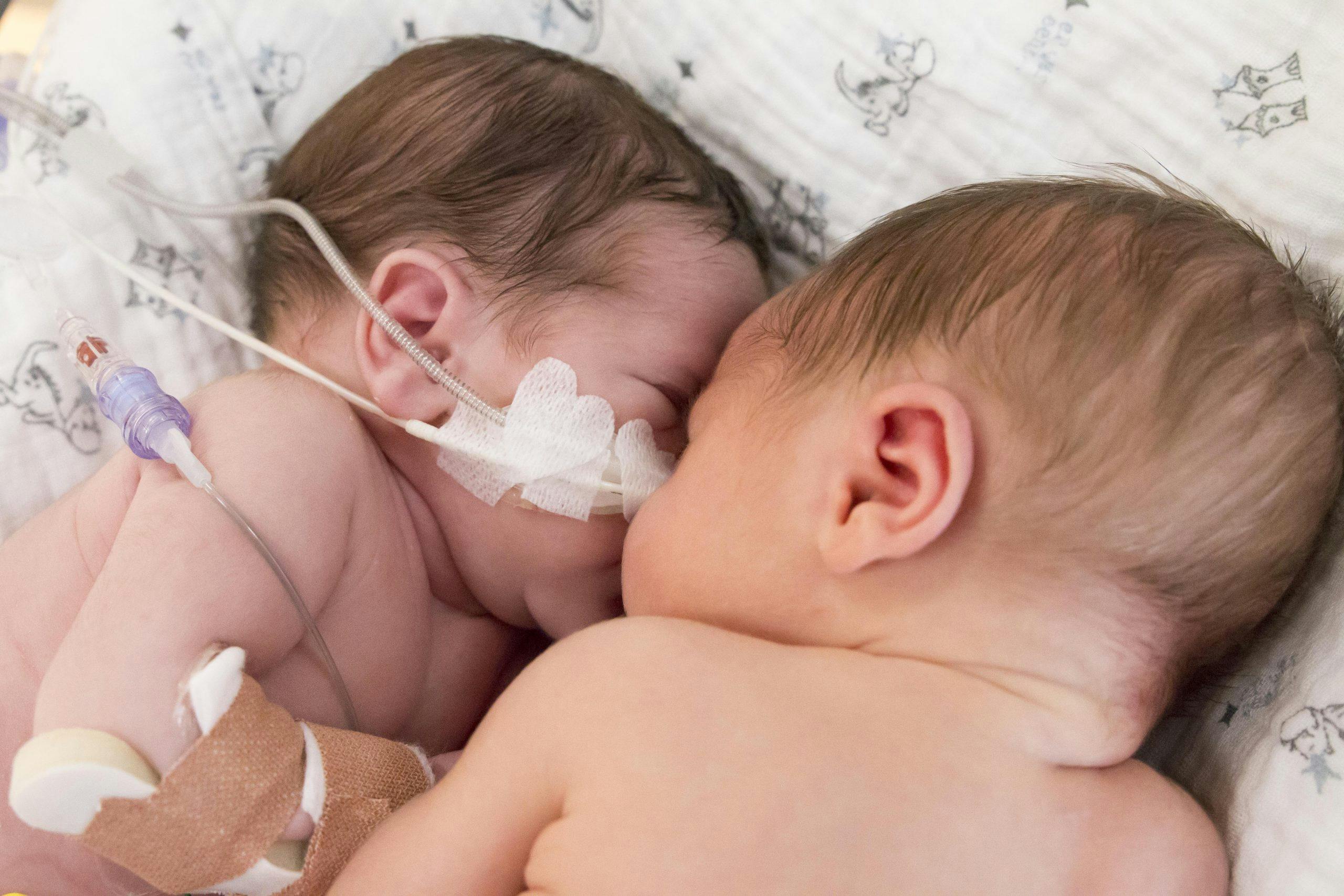 Pas de volgende dag kon Charlotte naar haar dochter toe, die op dat moment op de Kinder Intensive Care was opgenomen. “Ze was zo klein en lag aan allerlei toeters en bellen. Omdat ze geïntubeerd was, maakte ze geen geluid als ze moest huilen. Mijn moederhart brak toen ik haar zo zag.” Een verpleegkundige stelde voor om Ezra en Isabelle even samen in één bedje te leggen. Zodra Ezra tegen zijn zusje aanlag, legde hij zijn kleine handje op haar schouder. “Op de monitor zagen we dat haar hartslag rustiger werd. Alsof ze gerustgesteld werd. Een klein magisch moment in een onzekere periode.”